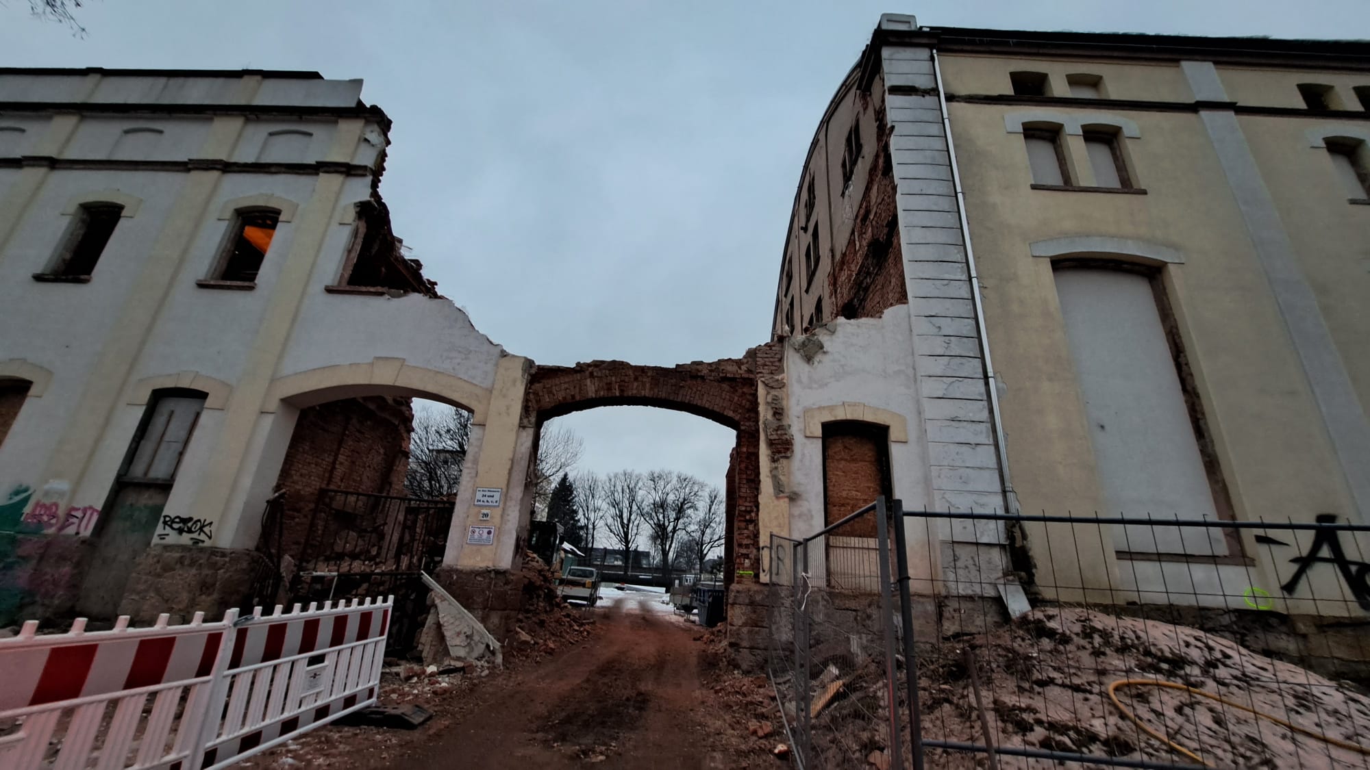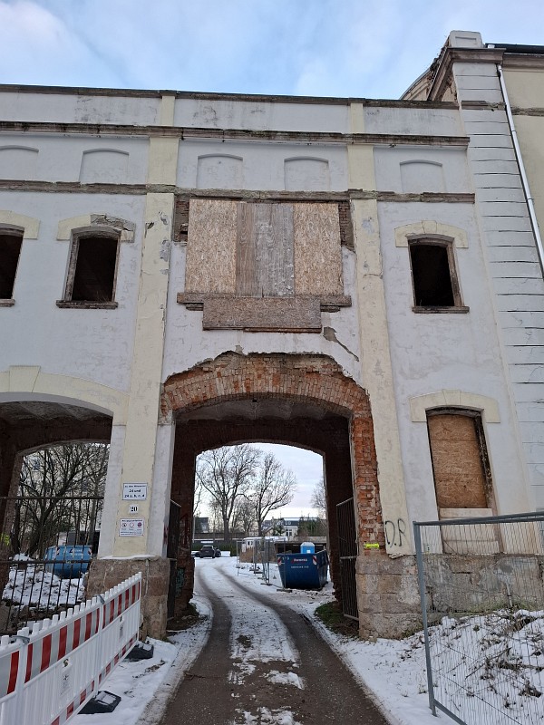 | 02.02.2026 der (Teil) Abriss des historischen Torhauses der Societätsbrauerei ist für heute angekündigt ![]() Zustand vor Beginn der Arbeiten am 01.02.2026 ![]() Zustand am 04.02.2026 - Endzustand? |